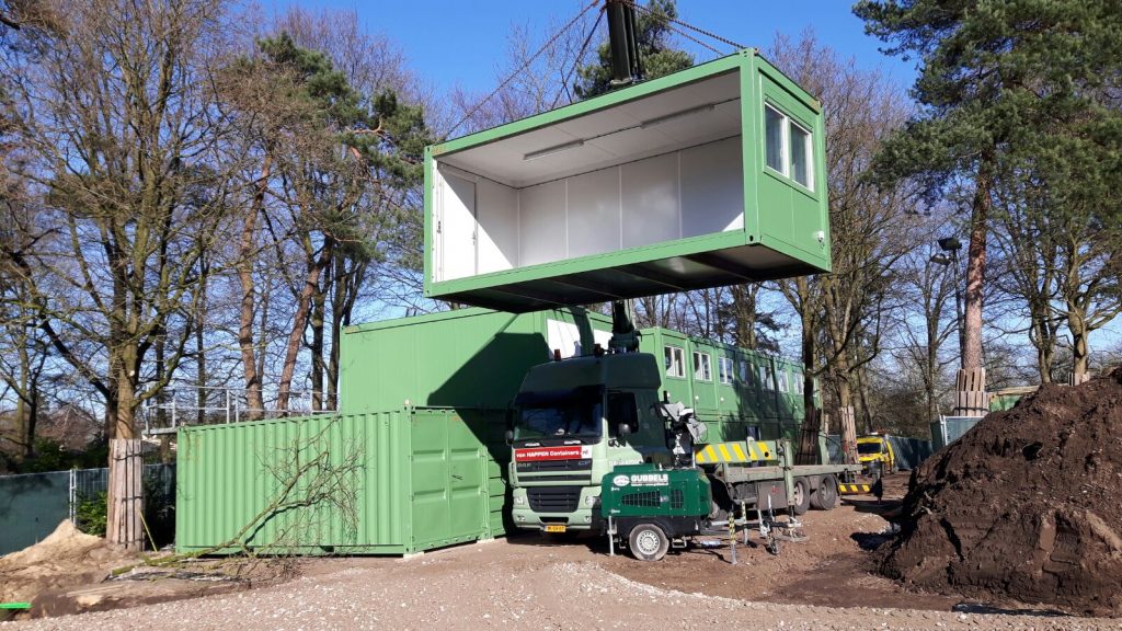 Voor de grotere projecten zijn wij de allround-dienstverlener die ook de units en opslagcontainers kan plaatsen. Wel zo handig, één aanspreekpunt. En het grote voordeel van die opslagcontainers is het inbouwslot, vandalisme en inbraakbestendig. Informeer naar de mogelijkheden van Van Happen, van keet tot container, wij hebben het allemaal in huis.